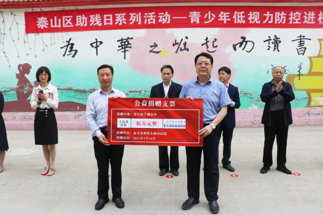 ? ? ? ? 5月14日上午,泰安光明愛(ài)爾眼科醫(yī)院數(shù)十位醫(yī)護(hù)人員攜帶相關(guān)設(shè)備與低視力防控產(chǎn)品,驅(qū)車趕往位于泰安市泰山區(qū)省莊鎮(zhèn)的羊樓小學(xué),開展青少年低視力防控進(jìn)校園活動(dòng)。 ? ? ? ? ?此次活動(dòng)是泰山區(qū)殘聯(lián)舉行助殘日系列活動(dòng)的其中一站,是一項(xiàng)以低視力防控、眼健康科普為主要宗旨,以降低校園內(nèi)近視發(fā)生率,呵護(hù)學(xué)生眼健康為目標(biāo)的公益助學(xué)活動(dòng)。 ? ? ? ? ?泰安市殘聯(lián)四級(jí)調(diào)研員李廣喜、泰山區(qū)政府分管領(lǐng)導(dǎo)范玉文、泰安光明愛(ài)爾眼科醫(yī)院CEO楊敬昌、泰山區(qū)殘聯(lián)理事長(zhǎng)孫超、副理事長(zhǎng)劉勝華,省莊鎮(zhèn)副鎮(zhèn)長(zhǎng)馬紅、省莊鎮(zhèn)教育委員會(huì)黨委副書記馬長(zhǎng)榮,羊樓小學(xué)校長(zhǎng)趙光明以及區(qū)殘聯(lián)、愛(ài)爾眼科部分醫(yī)護(hù)人員及羊樓小學(xué)教職工和學(xué)生參加此次活動(dòng)。活動(dòng)由泰山區(qū)殘聯(lián)黨組書記劉長(zhǎng)順主持。